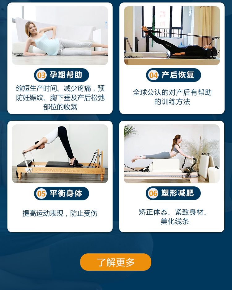 对于已经完成过垫上普拉提、Reformer培训的学员来说,可以 掌握更多的器械,让自己的私教课程编排更自如;对于还没有培训 过其他普拉提系列的学员,场馆大器械可以让你一次了解普拉提运 动体系。